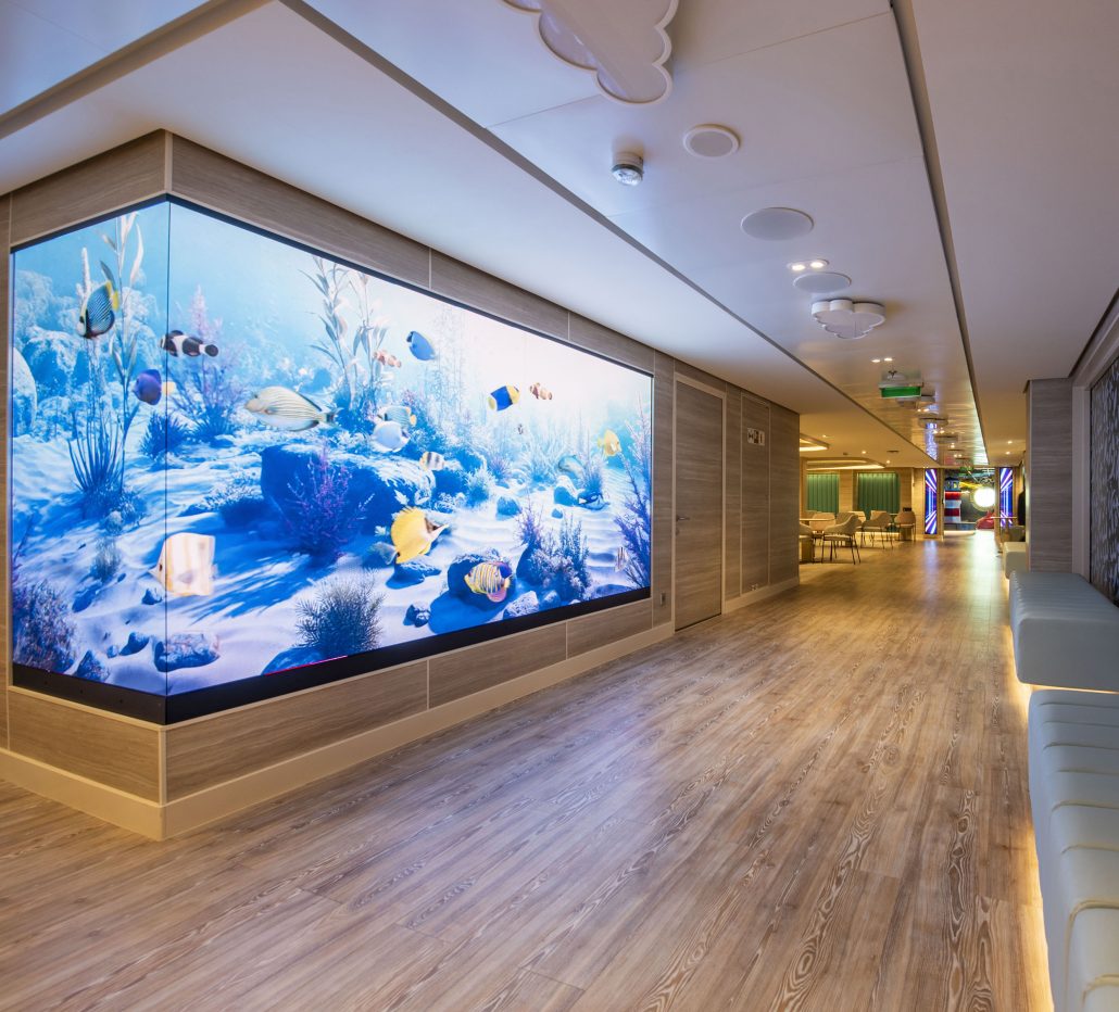 LED video walls are made from small blocks of LED’s (tiles) and do not have a bezel. They are really good for video walls that are viewed from a little distance, as when you are very close to one of these walls you can make out the individual dots that make up the tile. This type of video wall is priced by the viewing range. If you want people to be able to see the image close up then there is a premium price. Generally a P10 (you can see a decent image from 10 meters away) would be much cheaper than a P1.8 (you can see an image from 1.8 meters away). However, if you go closer than 1.8m then you would be able to see the dots that make up the picture. LED video walls are generally much brighter and higher contrast than the LCD option. They also offer better viewing angles.
